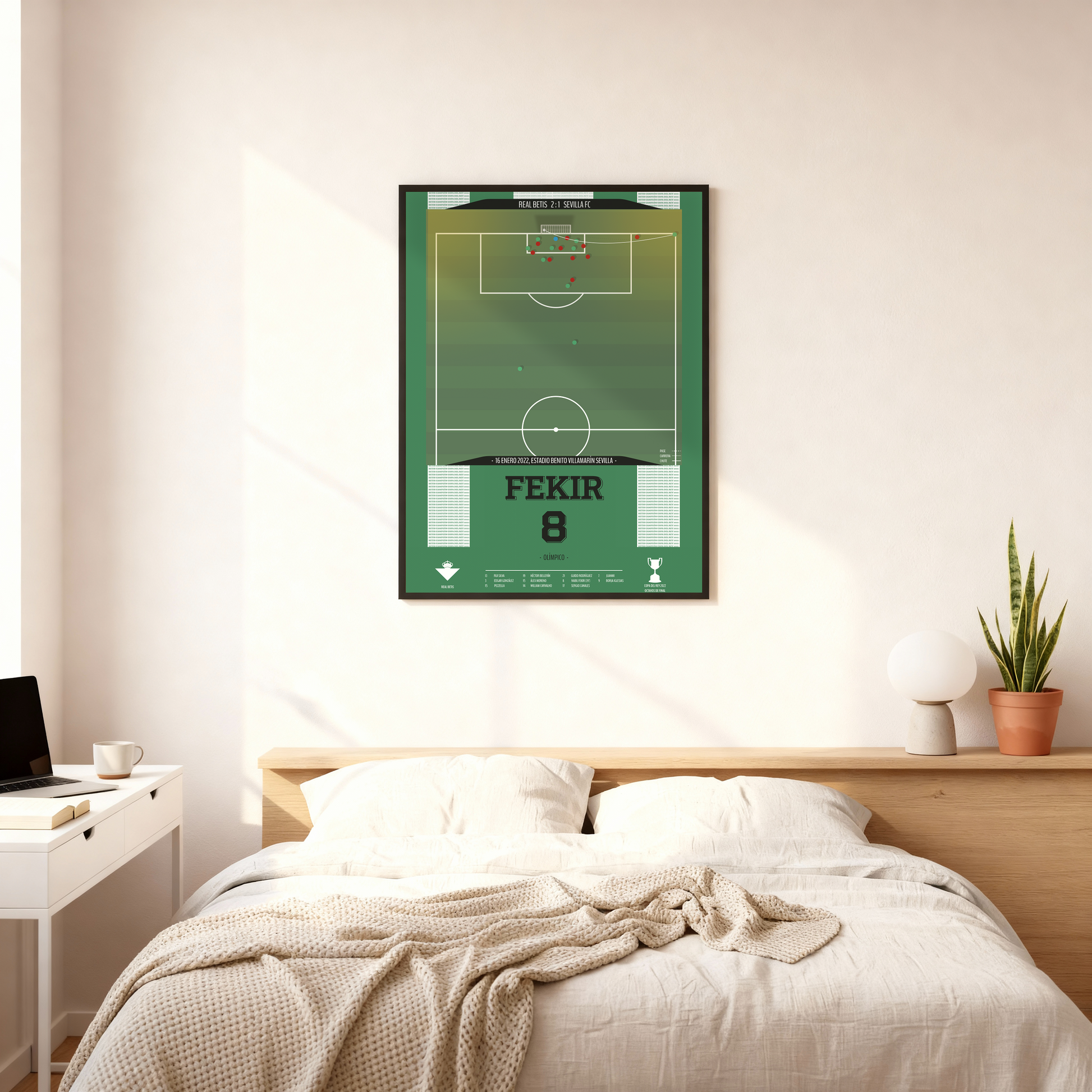 Revive la magia del derbi sevillano con este póster del espectacular gol olímpico de Nabil Fekir en la Copa del Rey 2022. El 16 de enero, en un Benito Villamarín encendido, el francés sorprendió a todos con un saque de esquina directo a la red, firmando uno de los goles más memorables de la rivalidad entre Betis y Sevilla. Esta lámina captura la genialidad y el carácter de Fekir, símbolo del talento verdiblanco. Perfecta para los aficionados del Betis y coleccionistas de grandes momentos del fútbol español.
