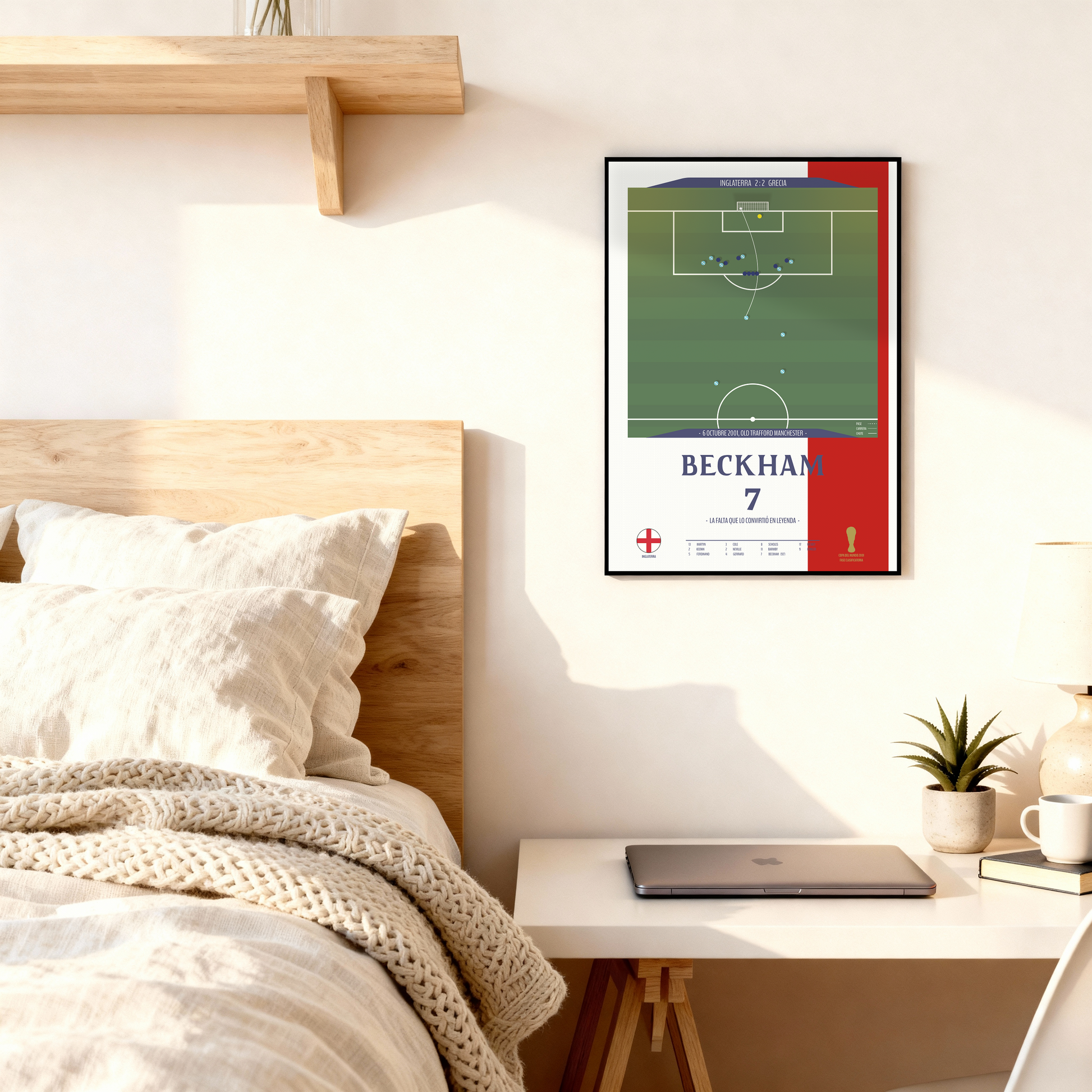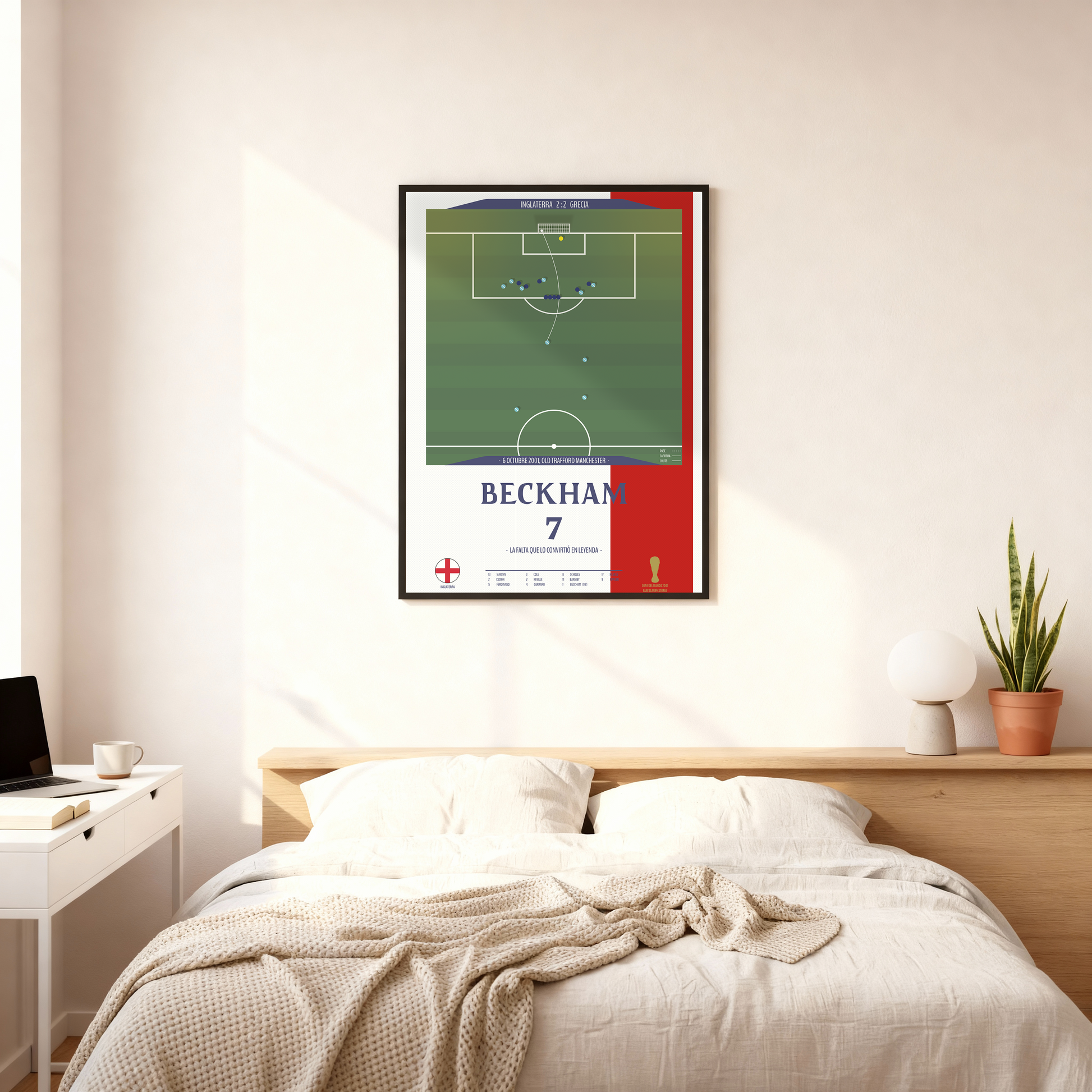Revive el momento que convirtió a David Beckham en leyenda con este póster del inolvidable gol de falta ante Grecia en 2001. Con un disparo perfecto en el último minuto en Old Trafford, el capitán inglés aseguró la clasificación de Inglaterra al Mundial de 2002 y selló su lugar en la historia del fútbol. Esta lámina captura la magia, la precisión y la emoción de ese instante eterno. Ideal para cualquier aficionado al fútbol o coleccionista, este póster llenará de historia y pasión cualquier espacio.